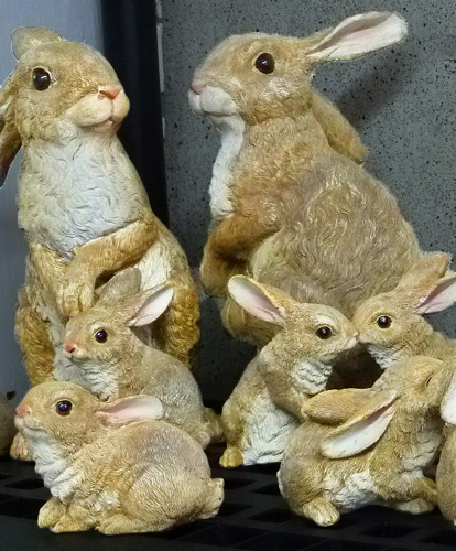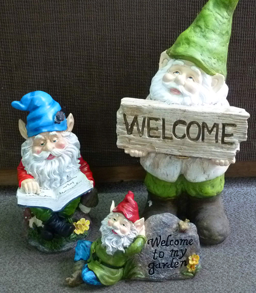 Looking for a little turtle or frog to accent your water feature? How about some wildlife that won’t eat your plants? We have the cutest garden art in stock including squirrels and bears, bunnies (perfect for Easter?), garden gnomes and more. Click on these images for larger views.