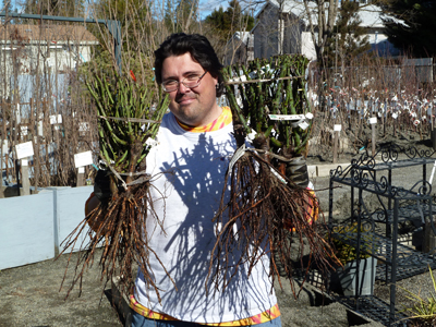 We carry only quality field-grown plants from reputable growers. We protect the roots by heeling them into sand immediately upon arrival. We know that damage to the tender roots can kill your plants before you even get them in the ground.
