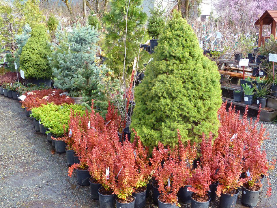 Nursery Display Published 11/28/2012 at 960 × 720 in Plant Photos and More: A Pictorial View of Trinity Nursery Contrasting foliage color and textures add interest to the garden (Barberries and Dwarf Alberta Spruce in foreground) Like Loading...